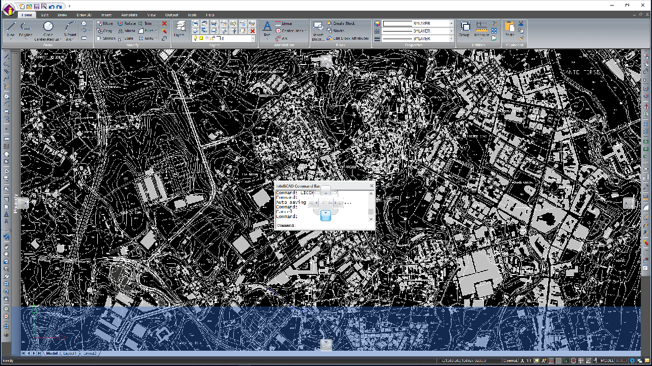 Príkazový riadok je dokovateľné okno, v ktorom zadávate príkazy IntelliCAD a zobrazujú sa výzvy a iné programové správy. V predvolenom nastavení príkazový riadok zobrazuje tri najnovšie riadky výziev, ale okno môžete rozšíriť a zobraziť ďalšie riadky. Presunúť alebo zmeniť veľkosť panela príkazov ťahaním.