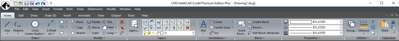 CMS IntelliCAD® podporuje stovky príkazov programu AutoCAD®. Vyberajte AutoCAD® príkazy z rozbaľovacích ponúk a ikonových nástrojových panelov alebo napíšte syntax príkazu na výzvu príkazového riadku - podľa toho, čo najviac vyhovuje vášmu štýlu práce. Môžete pracovať s oknom CMS IntelliCAD a jeho prvkami rôznymi spôsobmi. Môžete napríklad zobraziť a usporiadať panely s nástrojmi, zobraziť panel príkazov a povoliť stavový riadok. Panely s nástrojmi a panel príkazov môžu byť tiež uložené kdekoľvek na obrazovke alebo ukotvené na okraji hlavného okna programu IntelliCAD.