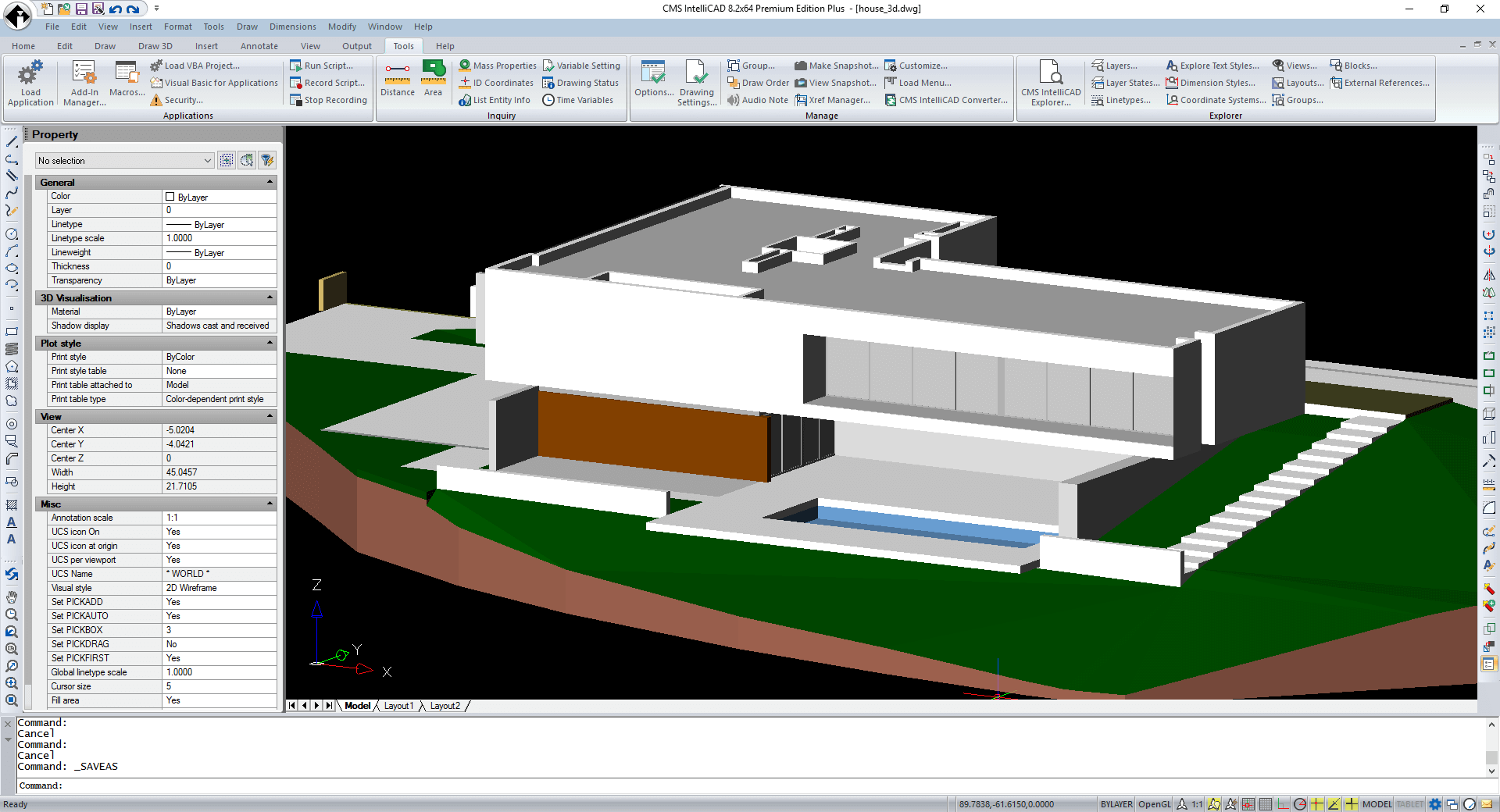 CMS IntelliCAD umožňuje jednoducho vytvárať 3-D návrhy pomocou 3-D kresliacich nástrojov. Kliknutím na tlačítko môžete zobraziť tieňované verzie vašich 3-D modelov alebo vaše existujúce 3-D knižnice .